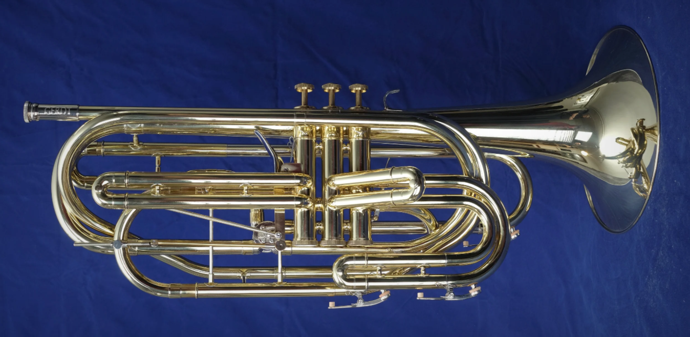 About eighty years later in the early 2000s, Vairis Nartišs out of Latvia built four B-flat subcontrabass trumpets (model NATU711-1). His marketing for the instruments was overly flowery, claiming them to be the world’s first subcontrabass trumpet. Two of the instruments were sent to museums, one was kept for Nartišs’ personal use, and only one was made for sale to private hands. It was listed on Reverb for nearly $11,000. There are multiple videos of the Nartišs subcontrabass trumpet on YouTube, and to me they all telegraph the same thing: subcontrabass trumpets, as built so far, are just tubas in trumpet form. The H.N. White subcontrabass trumpet literally is that, and while I don’t know what parts and mandrels Nartišs used to make the NATU711-1, the resulting sound is much the same as the H.N. White: it…just sounds like a tuba. They are invariably used with tuba mouthpieces in the videos, and I think that’s a big reason why they sound the way they do. But I would also like to know the bore size, and I would definitely like to hear one played with a cimbasso or contrabass trombone mouthpiece instead. Mouthpiece choice is very important with these specialty low instruments.